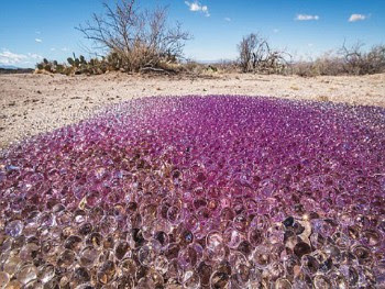 Sebuah kejadian aneh terjadi di daerah tuscon, Arizona, warga sekitar terkejut melihat ratusan bola-bola bening warna ungu terhampar di tengah gurun Arizona. Benda itu berair dan tembus pandang. Pasalnya, warga tidak mengenali benda bening yang kontras dengan kondisi gurun itu.